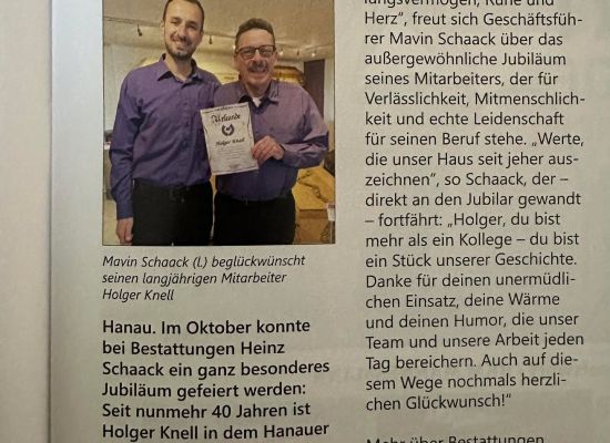 40 Jahre Holger Knell bei Bestattungen Heinz Schaack.